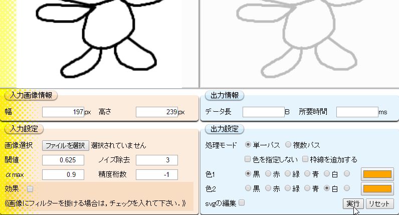 絵を保存したら、このサイトにアクセスして ベクター画像に変換してみましょう。http://www.h2.dion.ne.jp/~defghi/img2svg/potraceHtml.htm