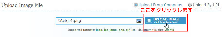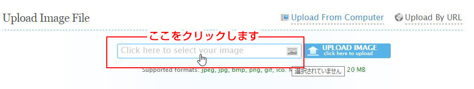 まず、サイトの下のほうにある「Upload Image File(画像アップロード)」とかかれた項目の