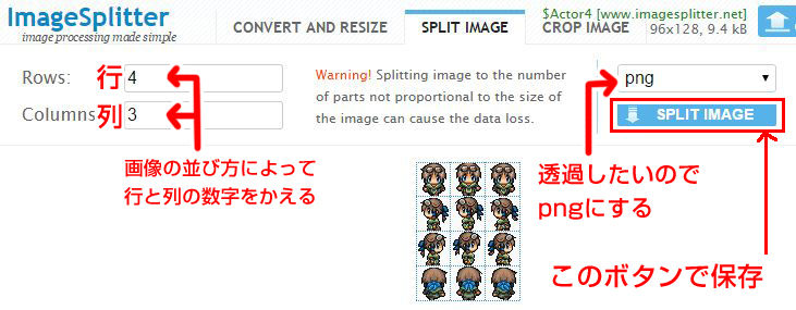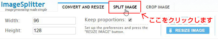 面倒なので、ImageSplitterというwebサービスを使って 一括で画像を分割してみましょう。