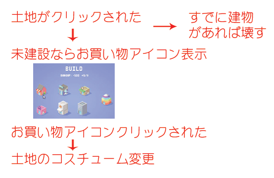 building?変数には、建設中の土地が、 どの建物をたてるかをわかるようにしています。