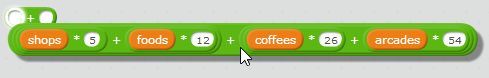 つぎに(○+○)の中に、shops×5をつかんで入れます。