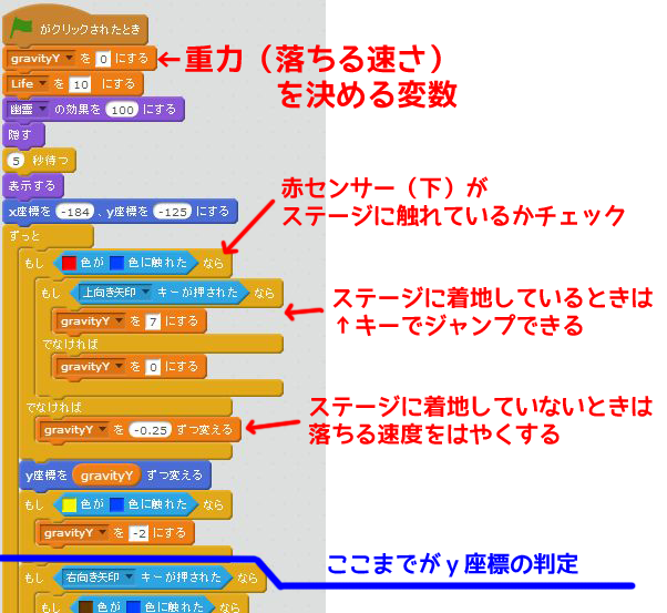 gravityYは、ジャンプ中の落ちる速度を決める変数です。