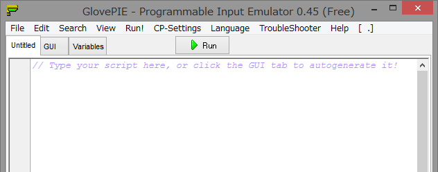 そして、GlovePIEの「Run」をおして実行してみましょう。