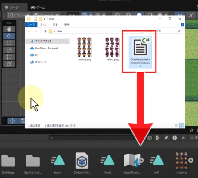 Assetsフォルダに、OverrideSpriteAnimationsTexture.cs