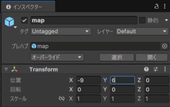マップの位置は小数点が出ないように、transformから調節しましょう。