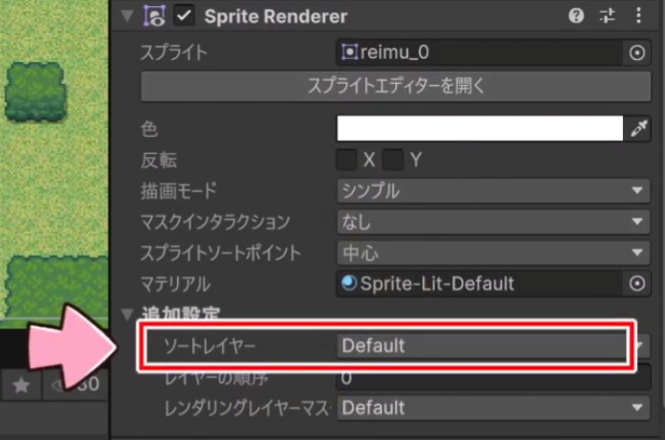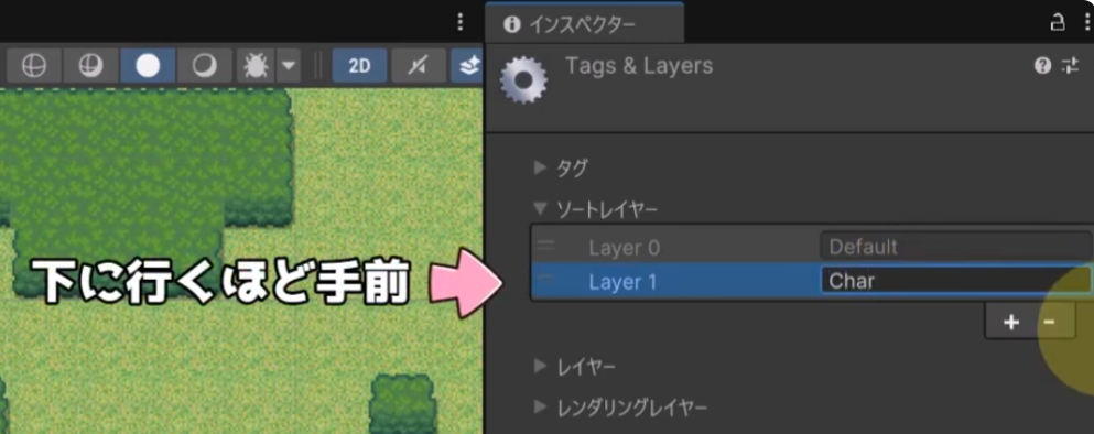 「「「ソートレイヤー」をクリックし「 Add Sorting Layer 」を選びましょう。
