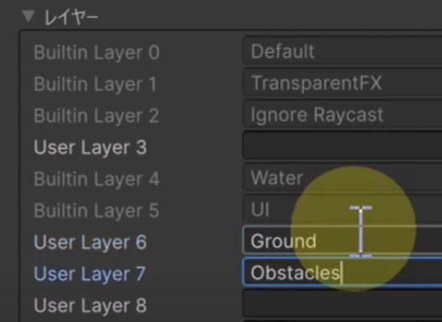 障害物(Obstacles)と地面(Ground)にわかれています。