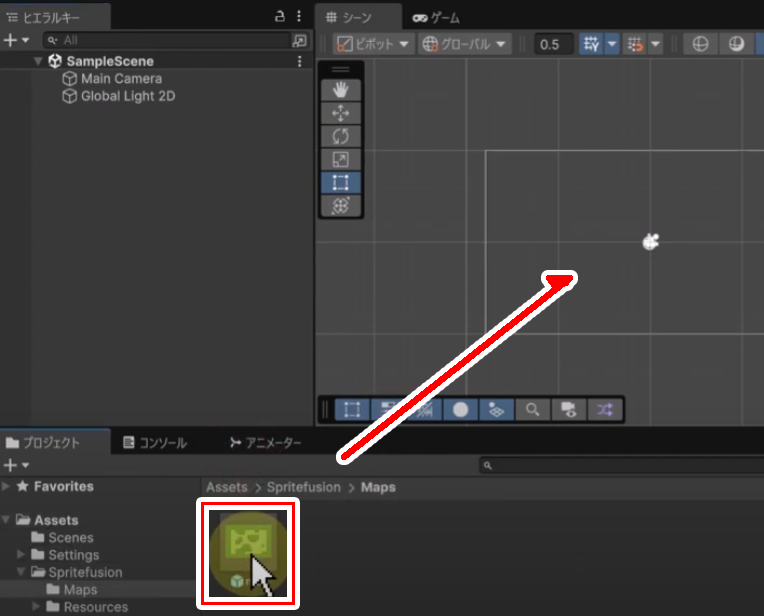 「Assets」→「SpriteFusion」→「Maps」の中に
