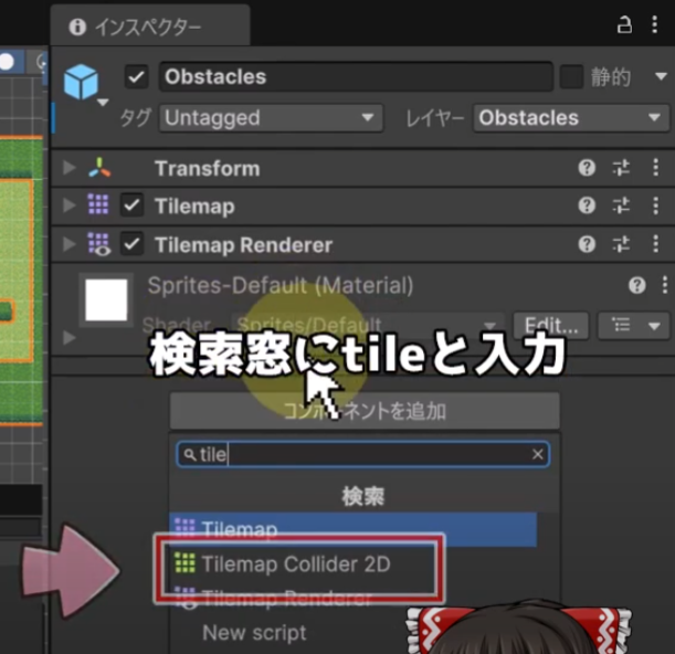 レイヤーを設定して、障害物だとわかるようにしましょう。