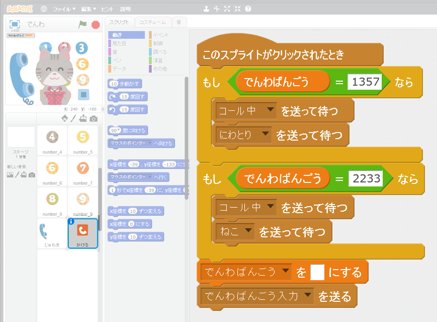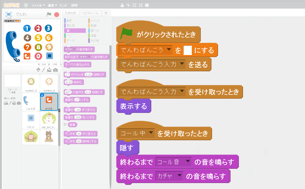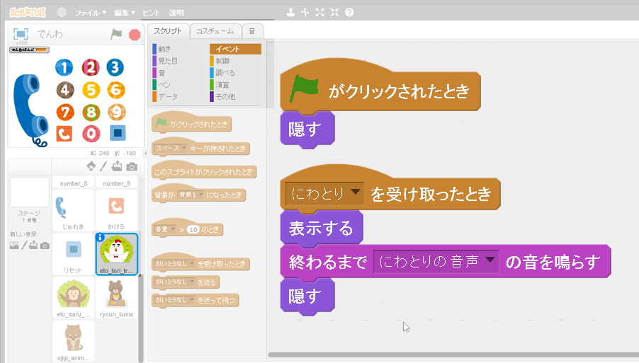 これでにわとりのキャラクターが電話にでてくれるようになりました。
