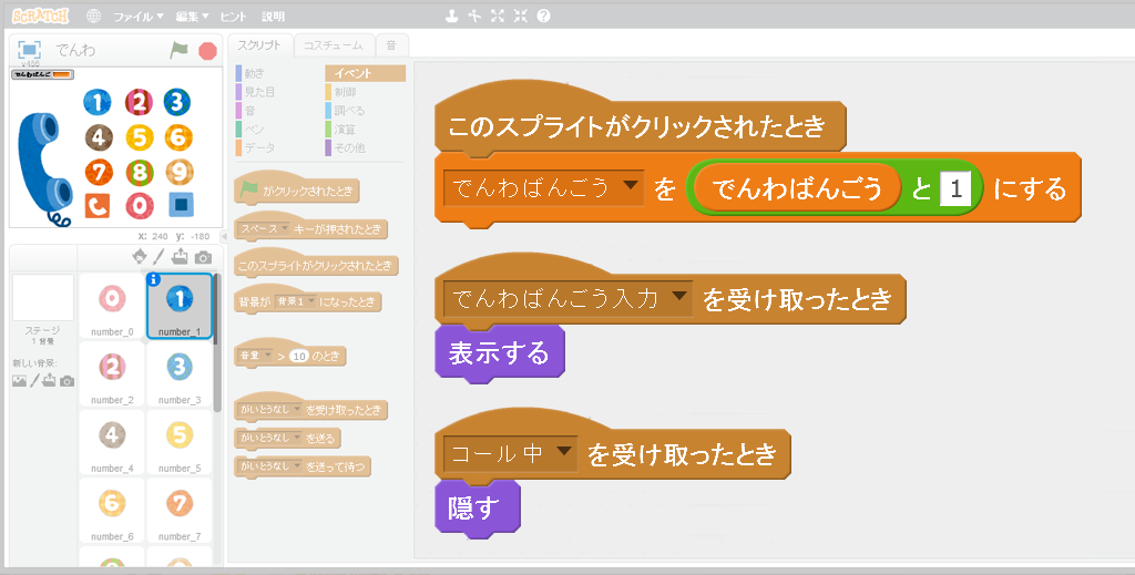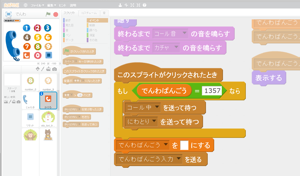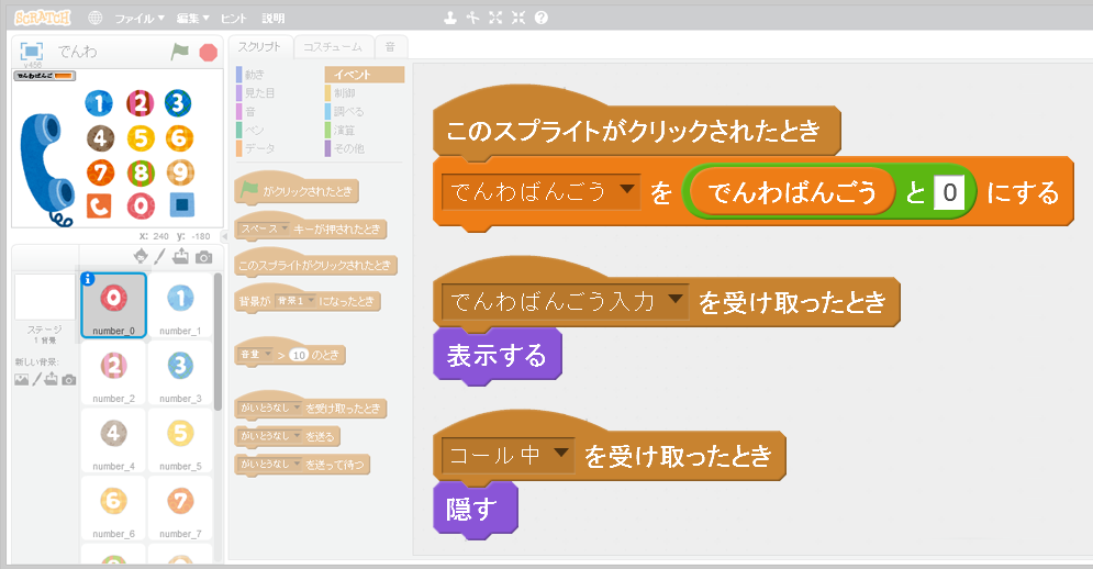 電話番号を入力できるようになったので、つぎはかけるボタンのプログラムをみてみましょう。