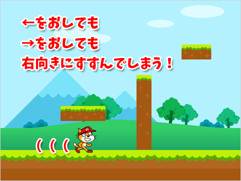 さて、左右に動けるようになったら、ネコを右にずっと動かしてみましょう。すると・・・