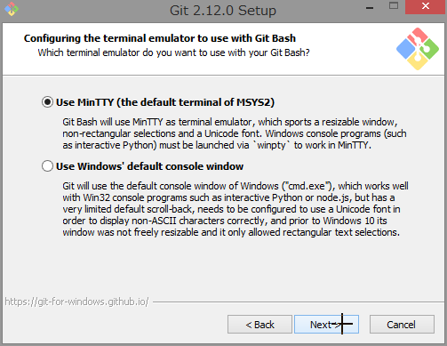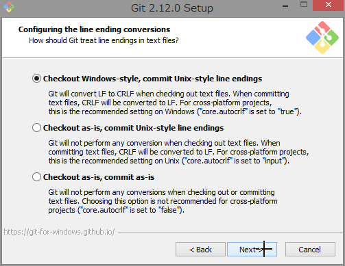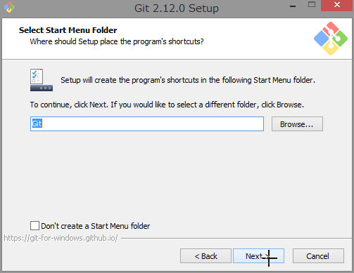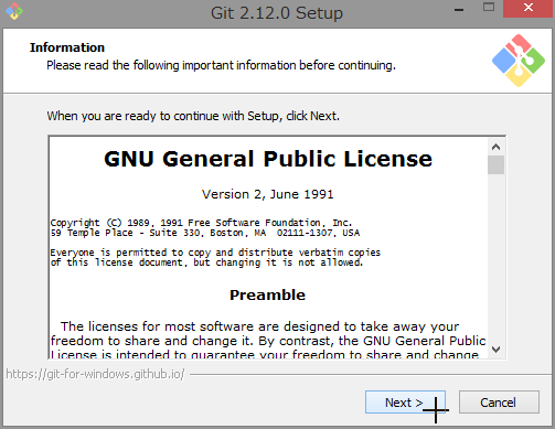 「Next」ボタンをクリックするとGitのセットアップが始まります。