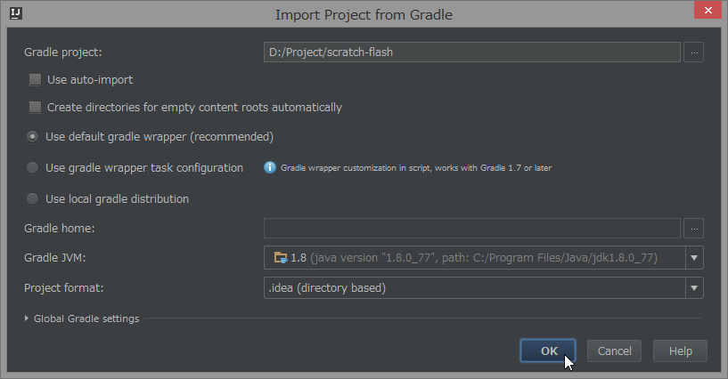 Gradle JVMのところに、先ほどインストールしたjavaが入っているか