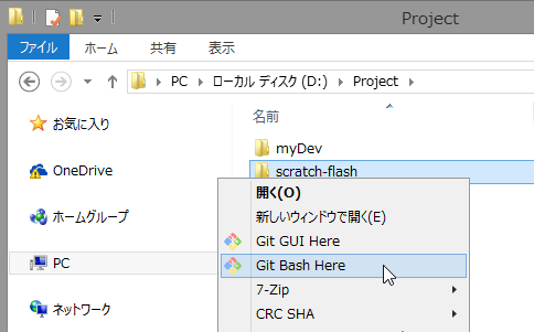 つぎは、この新しくできた「scratch-flash」フォルダを