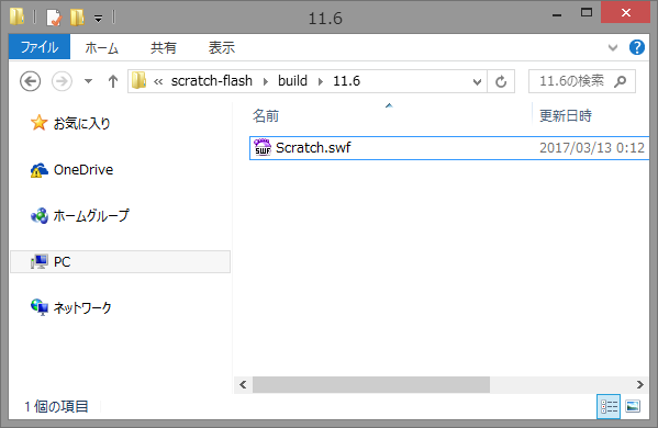 「11.6」のフォルダの中に「Scratch.swf」が作られました。